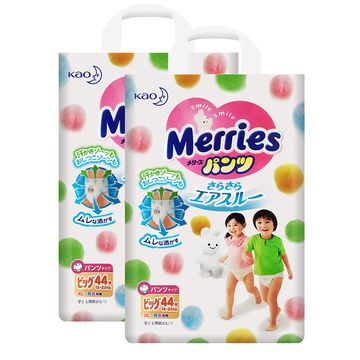 花王(Merries) 妙而舒 婴儿纸尿裤拉拉裤 XL44(12-22kg) 透气原装进口*2包